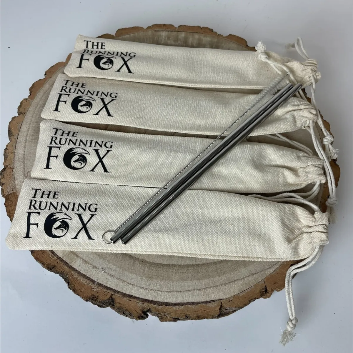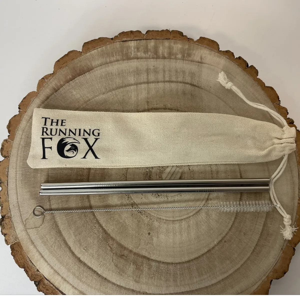 The perfect no plastic option. 2 metal straws with a cleaning brush in a linen drawstring bag.
